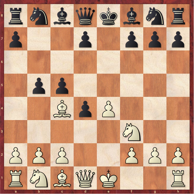 La Apertura del Centro: Variante Kieseritsky consiste en los movimientos 1.e4 e5 2.d4 exd4 3.Nf3 c5 4.Bc4 b5.