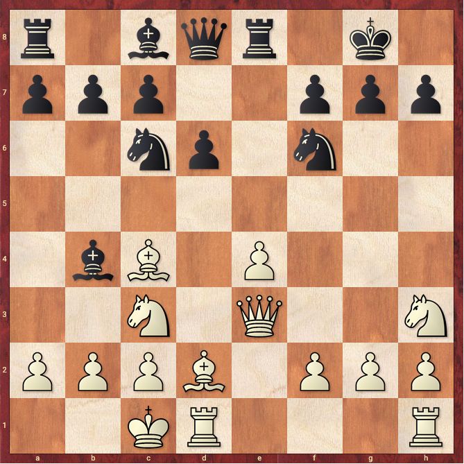 La Apertura del Centro: Variante Kupreichik consiste en los movimientos 1.e4 e5 2.d4 exd4 3.Qxd4 Nc6 4.Qe3 Nf6 5.Nc3 Bb4 6.Bd2 O-O 7.O-O-O Re8 8.Bc4 d6 9.Nh3.