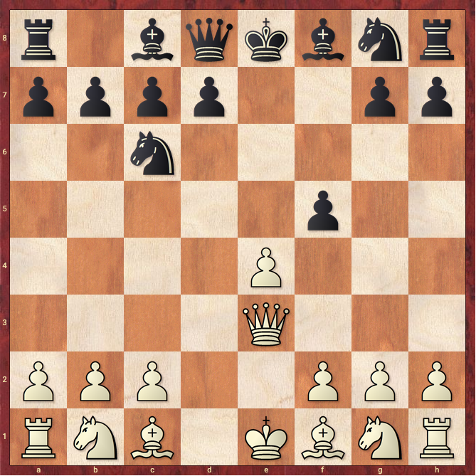 La Apertura del Centro: Variante L' Hermet consiste en los movimientos 1.e4 e5 2.d4 exd4 3.Qxd4 Nc6 4.Qe3 f5.