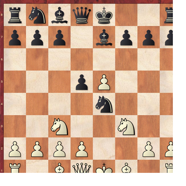 La Apertura Vienesa: Variante Breyer consiste en los movimientos 1.e4 e5 2.Nc3 Nf6 3.f4 d5 4.fxe5 Nxe4 5.Nf3 Be7.
